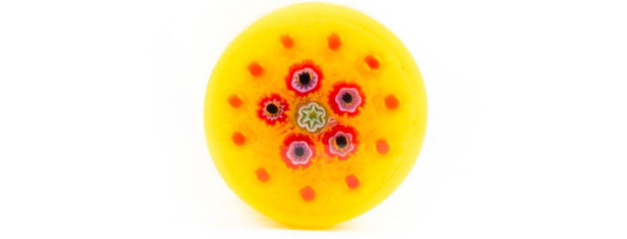 This pen boasts the national colors of Ukraine with beautiful blue hues and a brilliant yellow throughout the body and cap. Then I added something at each end that we’ve never done before. I created two unique glass mosaics on the top cap and the bottom of the body. Ukraine’s national flower is the sunflower that has become a representation of solidarity for the country and all they are going through. I carefully selected Venetian glass pieces with a designs like a sunflower and arranged them to create a larger sunflower mosaic. It is painstaking work since the pieces are so small (each pieces of glass ranges between 2-2.5mm in diameter) and need to be patiently glued into place, but the result is incredibly beautiful. There are a total of 29 pieces of Venetian glass inlaid on the pen top and bottom. I am pleased to dedicate this pen to the people of Ukraine and to stand with them by giving all proceeds to aid refugees who have fled the home they loved. In this time of war and grief, may this pen be a symbol of hope and reminder to pray for peace.